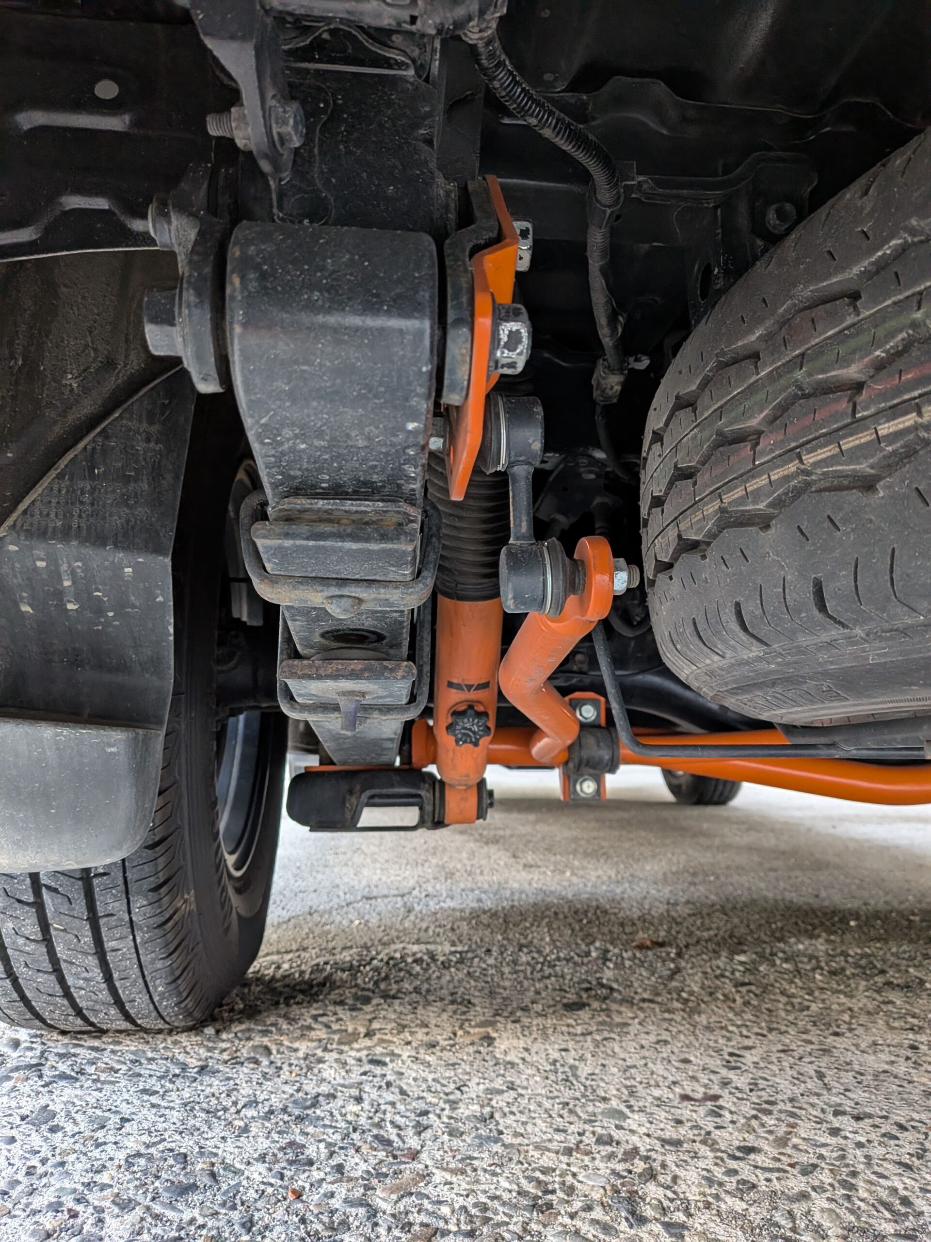 これは純正には装着されていない部品で、左右のリーフの動きをリンクさせて車体のロールを抑える役割があります。(フロントには取り付けされています)